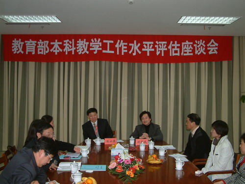 下午1时45分,评估专家唐伯明、陈文哲教授、聂钢教授召开教学管理座谈会。教务处和各二级学院相关工作人员参加会议。陈文哲教授、聂钢教授就学校教学管理中的一些问题和与会人员做了交流。