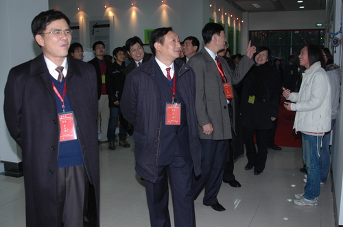 24日下午4时40分许,专家组一行在校党政领导班子成员陪同下来到崭新的大学生创业广场参观。