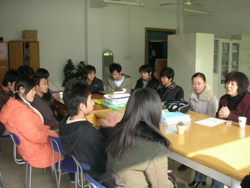 12月7日,一场特别的交流会在外语学院学召开。外语学院英语专业3名同学与机械学院06级测控专业两个班的班委在这里讨论如何促进机制专业同学的英语学习。