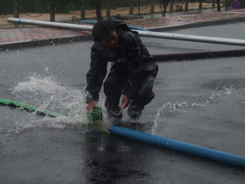在台风面前,学校加强领导,统一部署,全校师生员工闻风而动,雷厉风行,连续奋战,努力确保校园安全稳定。