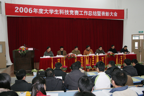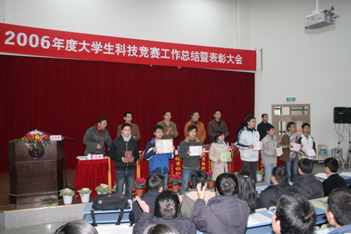 龚建立在作总结时首先代表校党委、行政向2006年为我校大学生科技竞赛工作付出辛勤劳动和汗水的老师和同学们表示忠心的感谢,向获奖的同学和老师们表示热烈的祝贺。