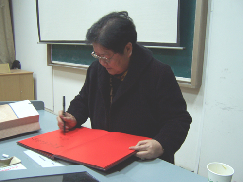 最后,叶文玲回答了在座同学及老师的提问,就当今文学创作与评论、文学家与批评家的关系等问题作了详细的解答,并为“百名教授讲座”题字留念。