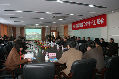 校党委书记徐志平在考评会上代表学校党政和全校师生对考评组一行的到来表示热烈的欢迎。他说,党的十六届六中全会明确提出构建社会主义和谐社会,中共浙江省委提出深入实施“八八战略”,全面建设“平安浙江”,围绕中央、省委要求,建设“平安校园”是高校义不容辞的社会责任。徐志平简要介绍了我校近年来的发展概况以及“平安校园”创建活动的总体情况。