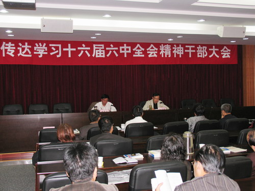 学校召开干部大会传达十六届六中全会精神 部署我校学习工作