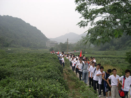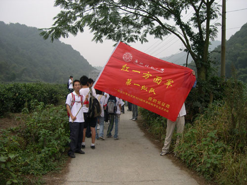 当一天“红军”,走一回“长征”!让我们一起“长征”去!为纪念长征胜利70周年,由校学生会发起的“我的长征路”大型远足活动得到了全校同学的积极响应。10月22日上午7点,我校530多名同学高举“我的长征路”旗帜,从小和山出发,途径留下、杨家牌楼、石人峰、美人峰、北高峰、老和山、黄龙体育中心、杨公堤、南山路、万松岭路,经过8小时的风雨跋涉,在下午4点胜利抵达云居山革命烈士纪念馆。