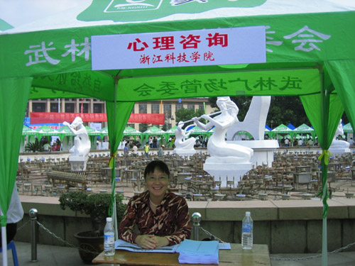 9月23日上午,大型广场咨询活动开始,我校有心理咨询和文物保护法律宣传咨询两项活动,共咨询20余人次,发放资料200余份。我校党委副书记胡浙平到武林广场慰问了广场咨询的老师们,并为我们去年的社科普及周活动所取得的成绩高兴,同时勉励大家要把今年的科普活动搞得更好。