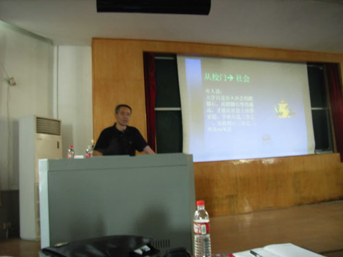 吕进教授由自己当年的大学生活及自己在那个年代就业时的困惑谈起,谈到大学的功能、人生需求、大学生对自身的认识及就业竞争等,为同学们展开了一幅形象生动的人生及就业画面。吕进教授还引用马斯洛需求层次理论、鸡头VS凤尾、面试的五大能力要求等众多经典理论,告诉同学们今后走入社会后该如何为人处世,如何继续学习,如何正确面对激烈的就业竞争。同学们深感大开眼界,受益匪浅。