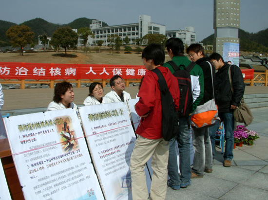 3月24日是世界防治结核病日,今年宣传活动的主题是:“防治结核 早诊早治 强化基层”。这一天,在学校中心广场由我校和西湖区疾病预防控制中心联合举办的“3·24”世界防治结核病日大型宣传咨询活动吸引了众多的师生前来观看、咨询。