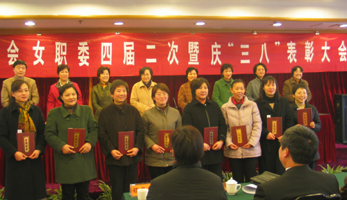 3月2日上午,省教育工会在杭召开了庆“三八”表彰大会。表彰大会由省教育工会主席、女职委主任秦素琴主持,省教育工会副主席陈勇宣读表彰决定。省总工会党组书记、常务副主席顾秀秀,省委宣传部常务副部长童芍素,省教育厅副厅长何杏仁等领导到会。到会领导发表了热情洋溢的讲话并向先进个人代表颁奖。此次全省教育系统受表彰的“事业家庭兼顾型”先进个人共110名。我校机电系林江教授、计算机系刘云仙副教授受到大会表彰。(图中右二为我校林江教授)